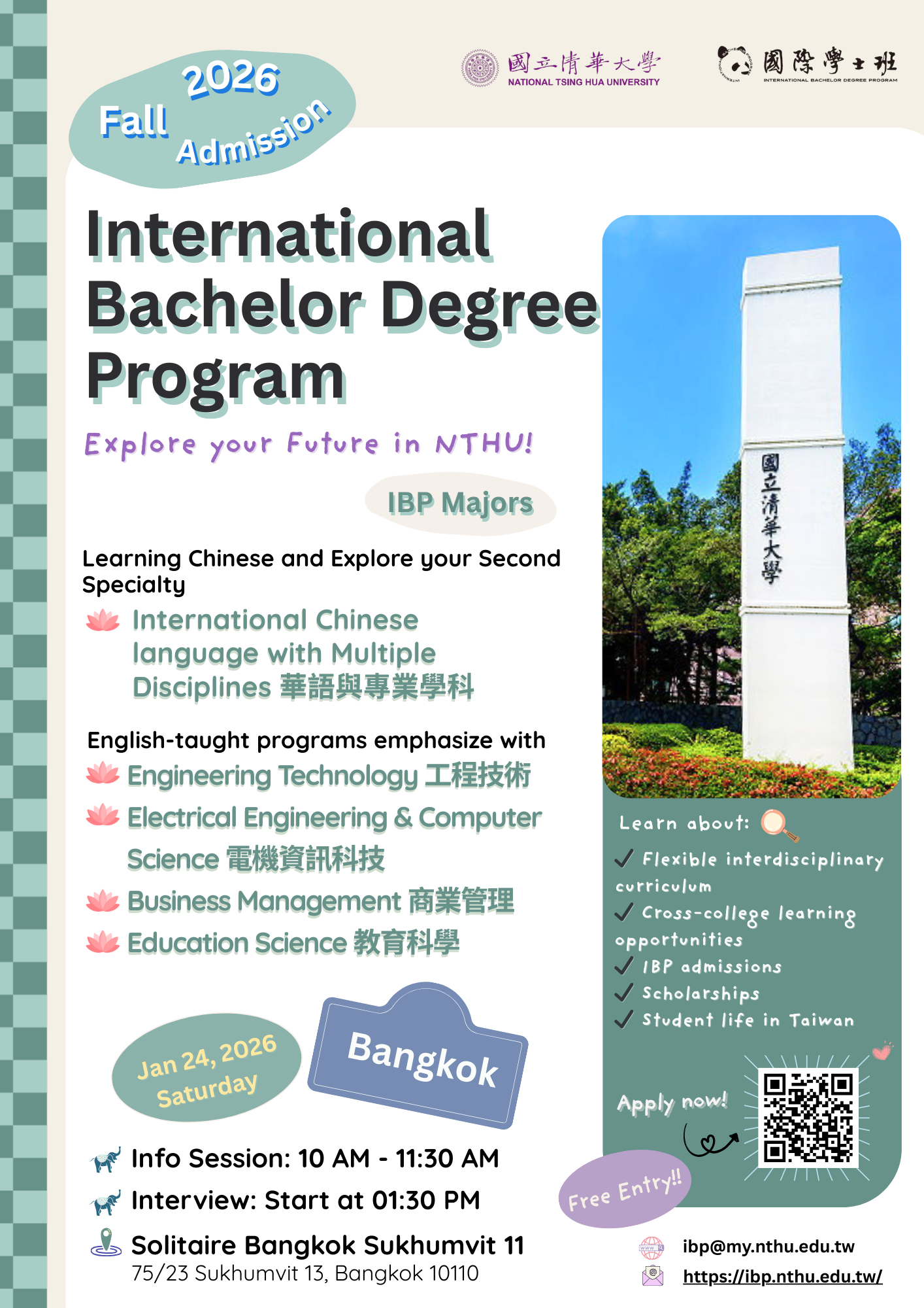 IBP 招生團隊將於 2026 年 1 月 24 日前往泰國曼谷,舉辦:
