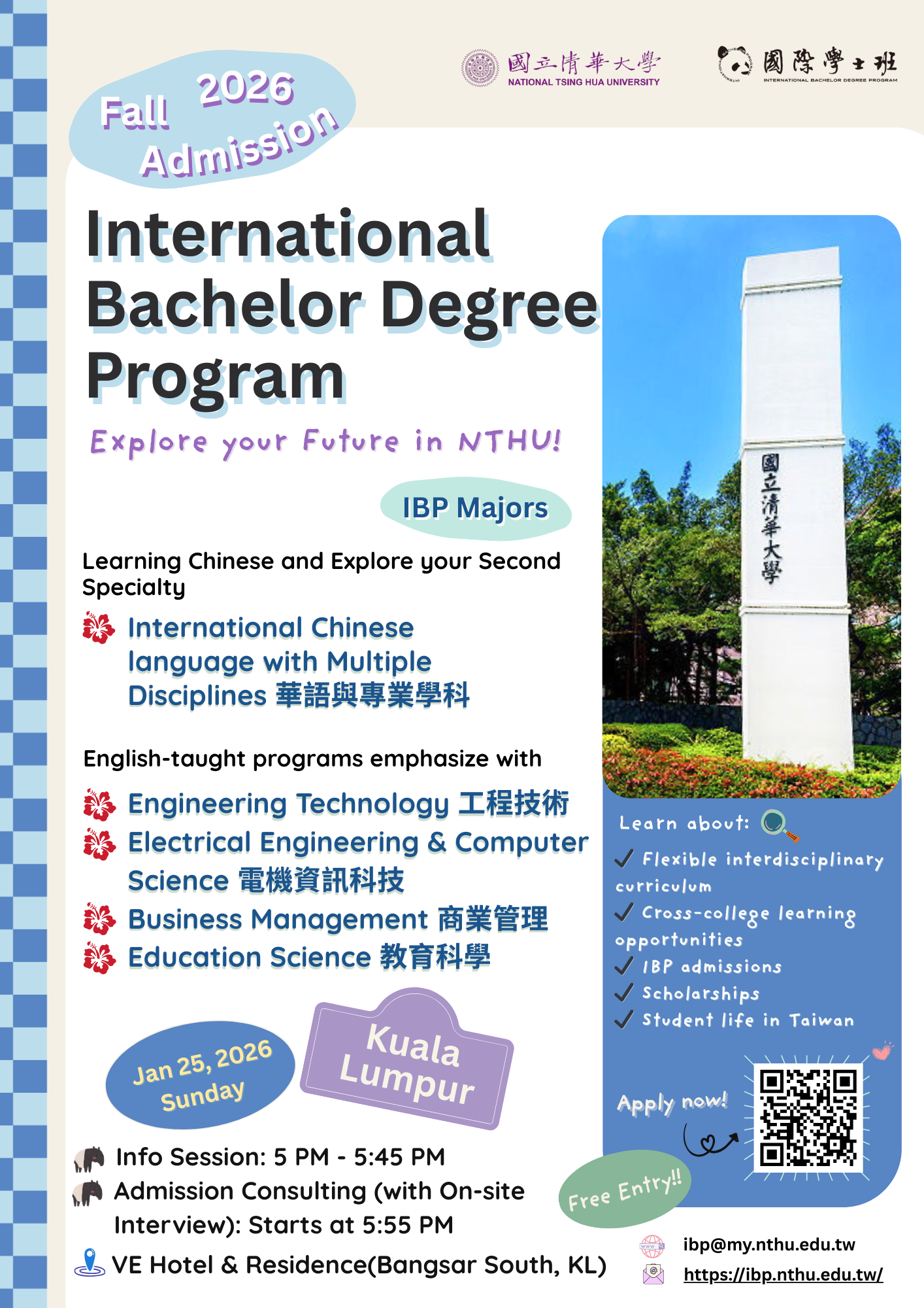 IBP 招生團隊將於 2026 年 1 月 25 日前往馬來西亞吉隆坡,舉辦: